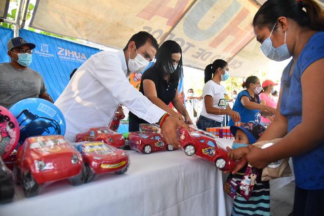 La caravana Llegaron Los Reyes organizada por el gobierno municipal que preside el Lic. Jorge Sánchez Alle arrancó en la comunidad de El Calabazalito, donde niños y niñas recibieron los juguetes que se recaudaron en el Kilómetro del Juguete organizado por Estéreo Vida en coordinación con el DIF Zihuatanejo.