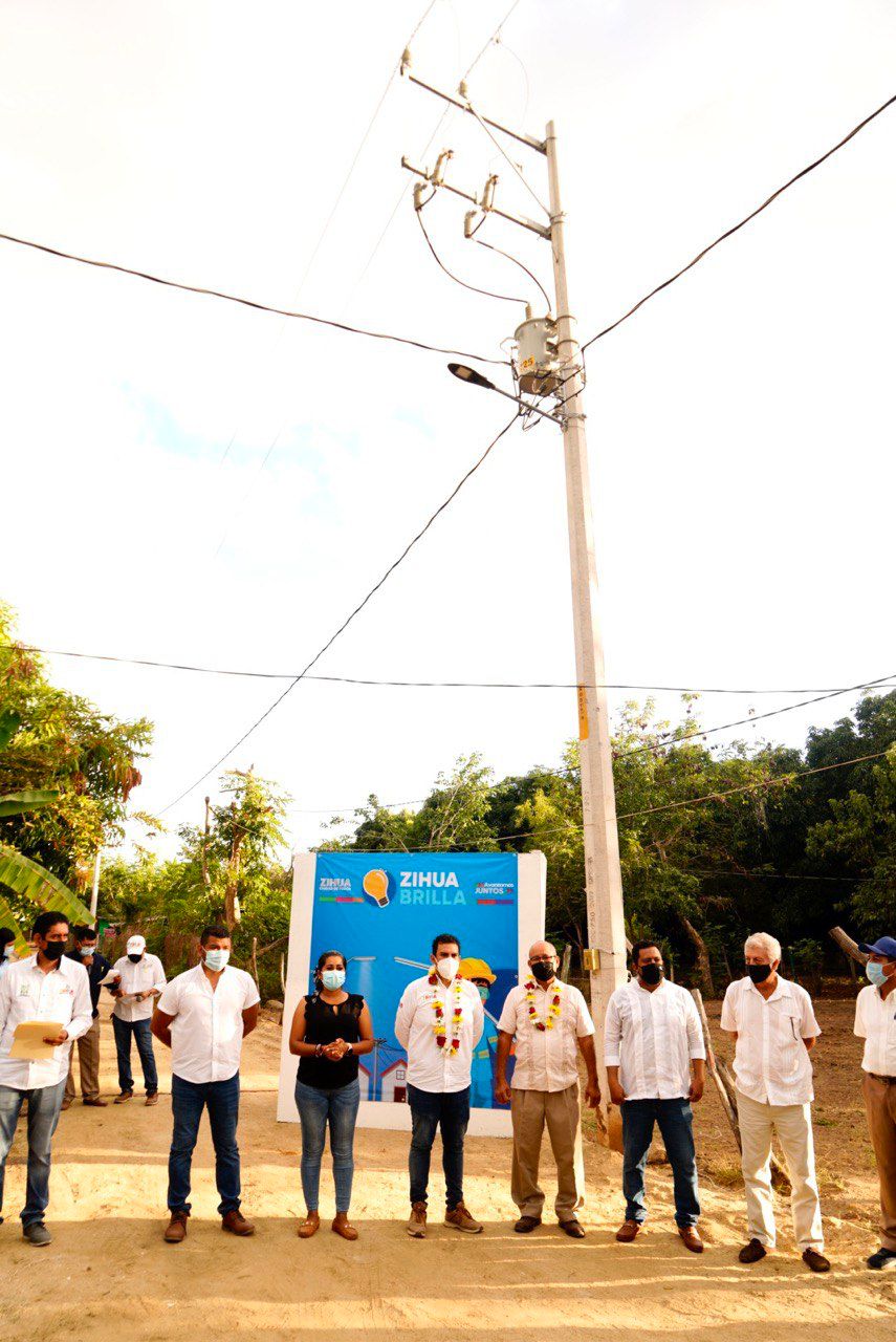Como resultado de las obras y acciones del programa Zihua Brilla que ha permitido avanzar en la transformación de Zihuatanejo de Azueta al superar rezagos en servicios e infraestructura básica, el presidente Jorge Sánchez Allec, acompañado de Integrantes del Cabildo, inauguró este martes las redes de electrificación de la delegación municipal Los Reyes y las colonias Ampliación Lomas de Sotelo y Villahermosa de El Coacoyul, en beneficio directo de decenas de familias de estos núcleos poblacionales.