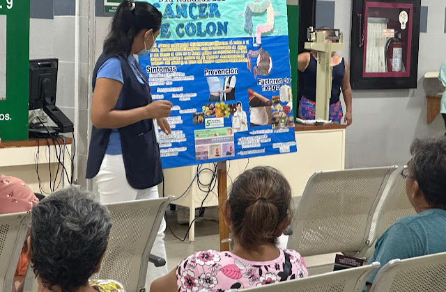 Con la finalidad de identificar los síntomas del cáncer de colon, personal de Promoción de la Salud de la Unidad de Medicina Familiar (UMF) No. 9 otorga pláticas en salas de espera a los usuarios que acuden a consulta.