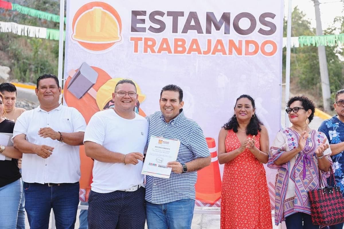 El presidente Jorge Sánchez Allec encabezó este jueves una visita a la colonia Ampliación Lomas del Riscal para inaugurar una obra de especial significado para esa zona de Zihuatanejo, como es la pavimentación de la calle principal en su tercera etapa, con lo que se completó el circuito Lomas del Riscal y Ampliación Lomas del Riscal, realizada a través del programa municipal Mano con Mano y que permitirá mejorar las condiciones de accesibilidad y movilidad, permitiendo un mayor flujo para sus habitantes y visitantes, entre otros beneficios.