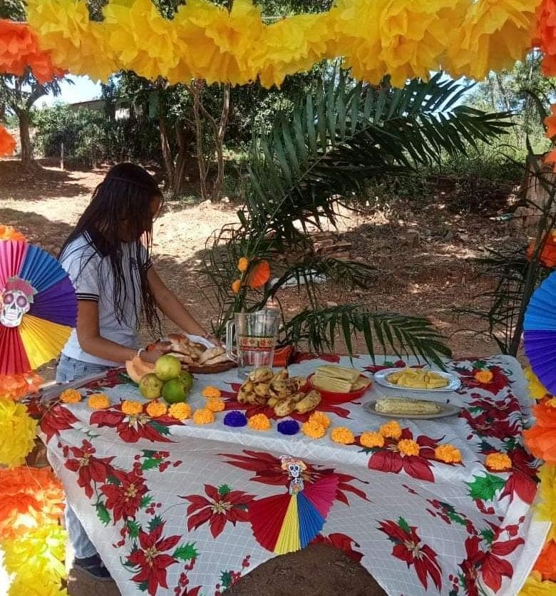 Los altares son el corazón de esta festividad. Estos espacios, llenos de color y simbolismo, se colocan en las casas y se adornan con fotografías, velas, pan de muerto, calaveras de azúcar y objetos personales. Cada elemento tiene un significado especial: el cempasúchil guía a las almas de regreso a casa, las velas iluminan su camino, y el agua simboliza la vida y la pureza.
